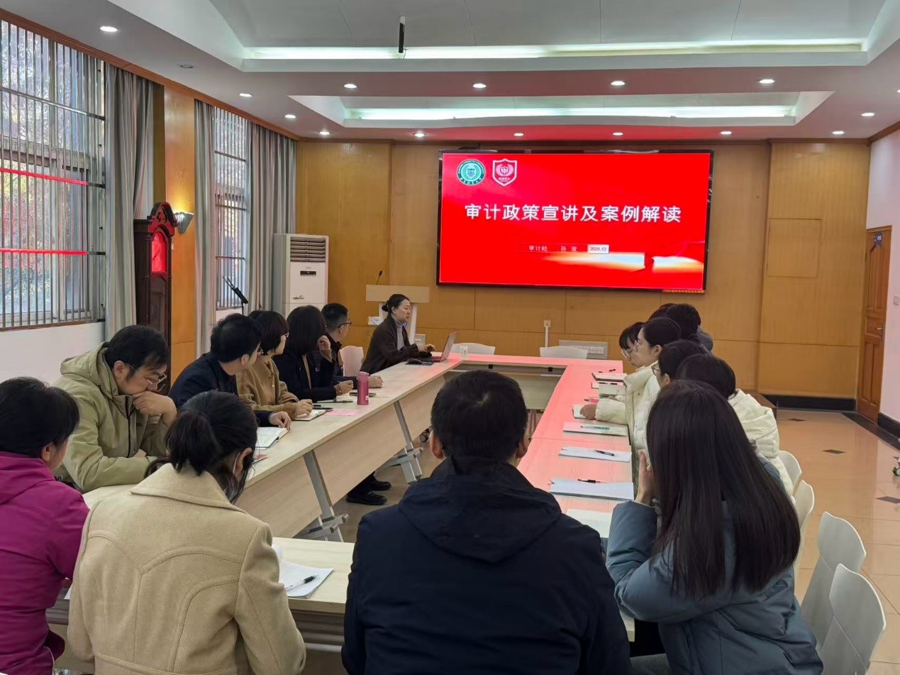 会议伊始,校审计处综合审计科孙莹科长受邀作《审计政策宣讲及案例解读》专题讲座。孙科长结合高校工作实际,将审计政策法规与典型案例深度融合,深入浅出地阐释了审计工作的核心要求,重点梳理了日常工作中的廉政风险点,针对性提出风险防控措施,为参会人员上了一堂生动的廉政警示教育课,引导大家切实做到知敬畏、存戒惧、守底线。